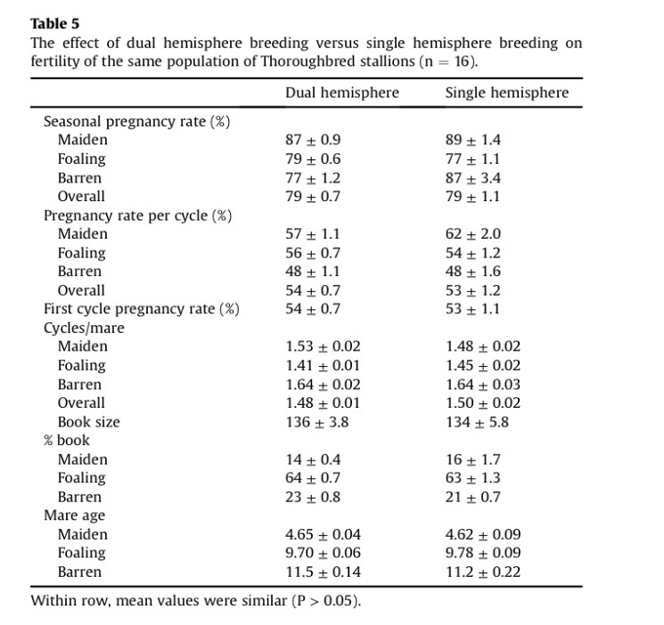 But the outcomes of this necessary study by TAMU were simple: there were no negative effects of breeding a stallion in dual hemispheres (both North and South). In fact, one of the only significant outcome of the variables evaluated was that the stallions had better fertility in the Southern Hemisphere in comparison to the North.