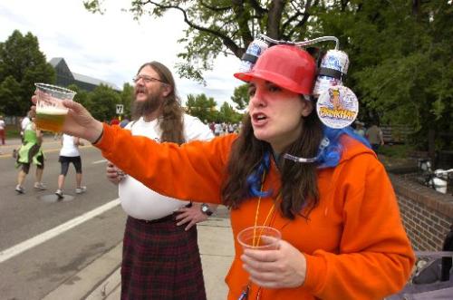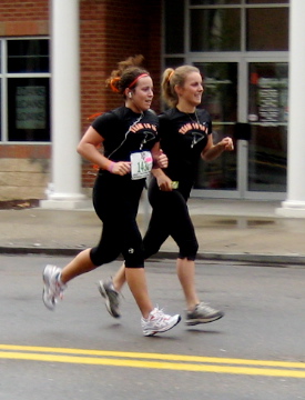 We started off great. Relaxed easy strides. One. Two. One. Two. I hummed some gangsta rap music in my head to get the adrenaline flowing. This wasn’t so bad…and then…CRAMP!!!!!! My uterus decided that it hated my intestines, who obviously told my stomach to go suck it. There was a water break coming up and my sister recommended taking a glass, but we were right in front of The Church Brew Works and drunk kids were trying to hand out beer! This seemed like a much better option. If I was drunk I wouldn’t be able to feel the pain that was about to assault me!